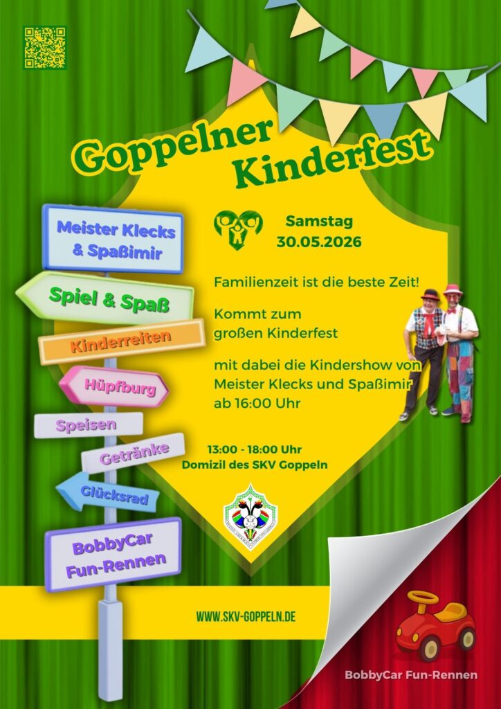 Am 30. Mai 2026 laden wir euch herzlich zum großen Kinderfest ein. Freut euch auf einen abwechslungsreichen Tag voller Spiel, Spaß und gemeinsamer Erlebnisse für Groß und Klein.