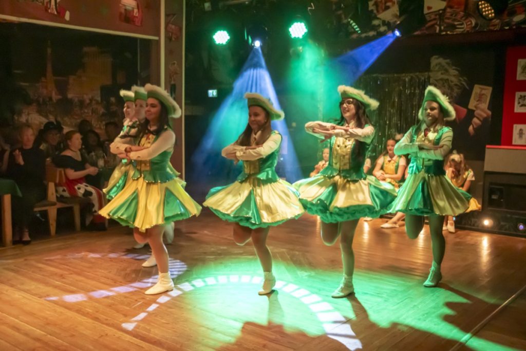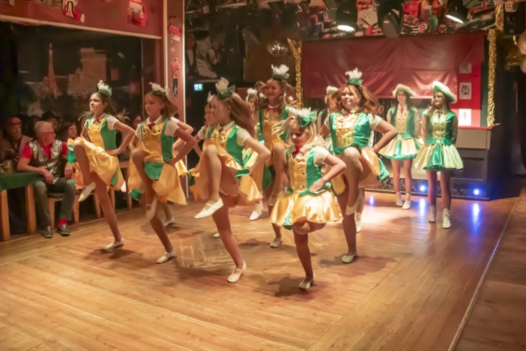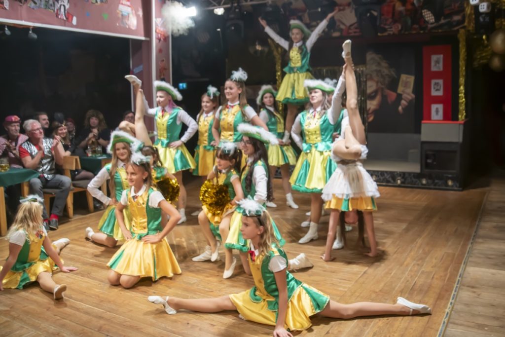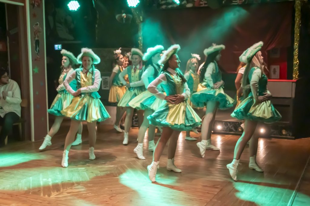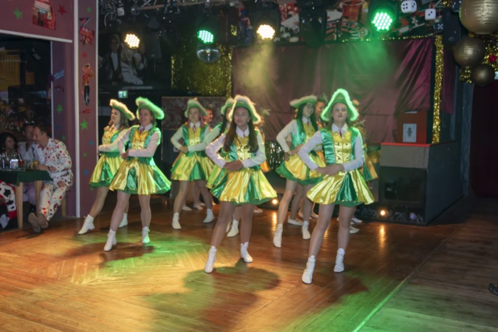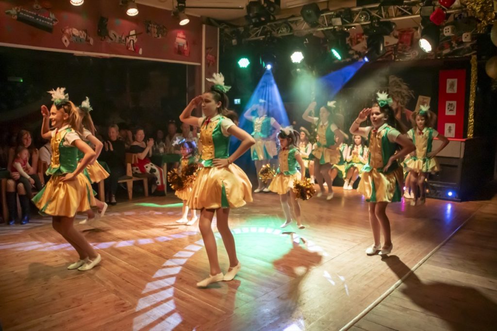 Die Showtanzgruppe des SKV Goppeln mal nicht unter Wasserfontänen, Bananenstauden, Orchideen, Funkenregen, sie zünden ein Bühnenfeuerwerk im Scheinwerferlicht: