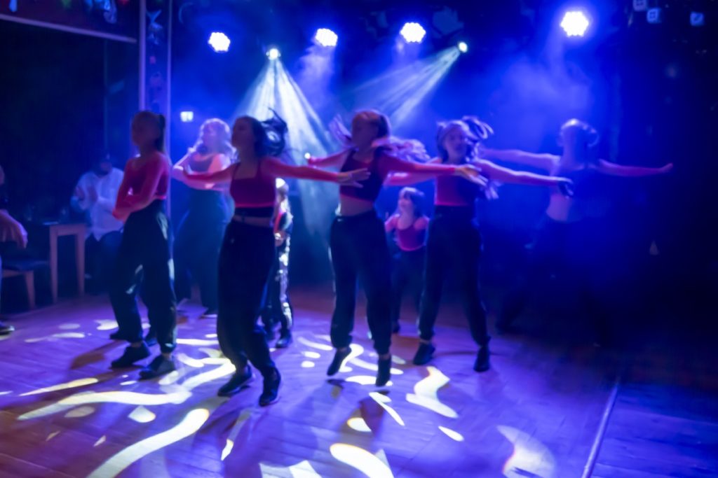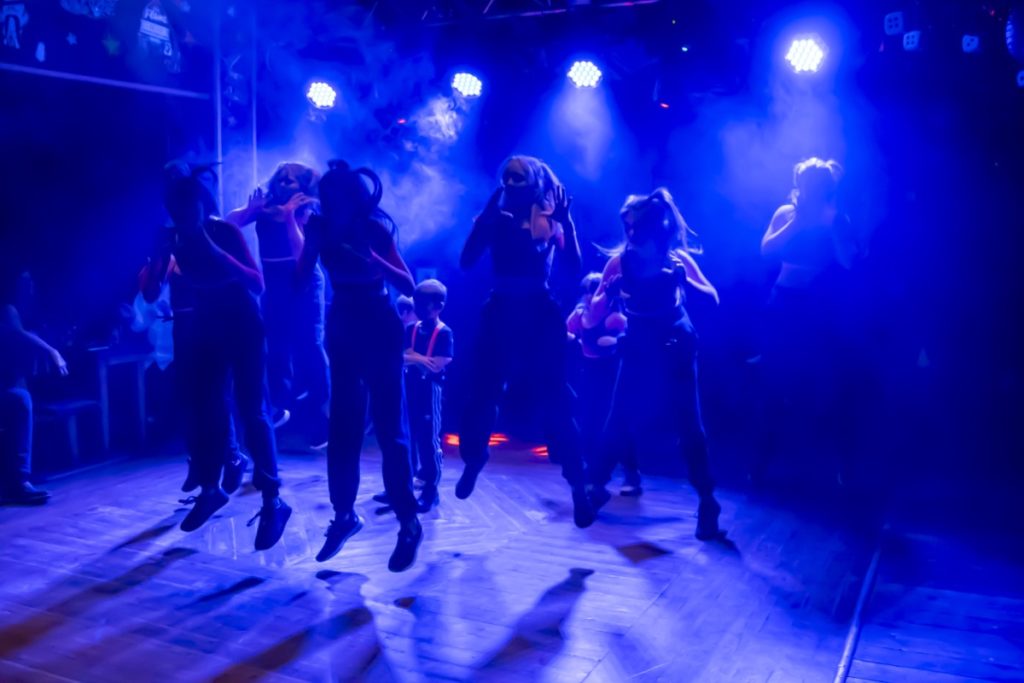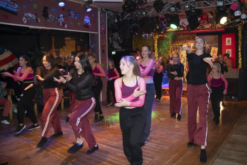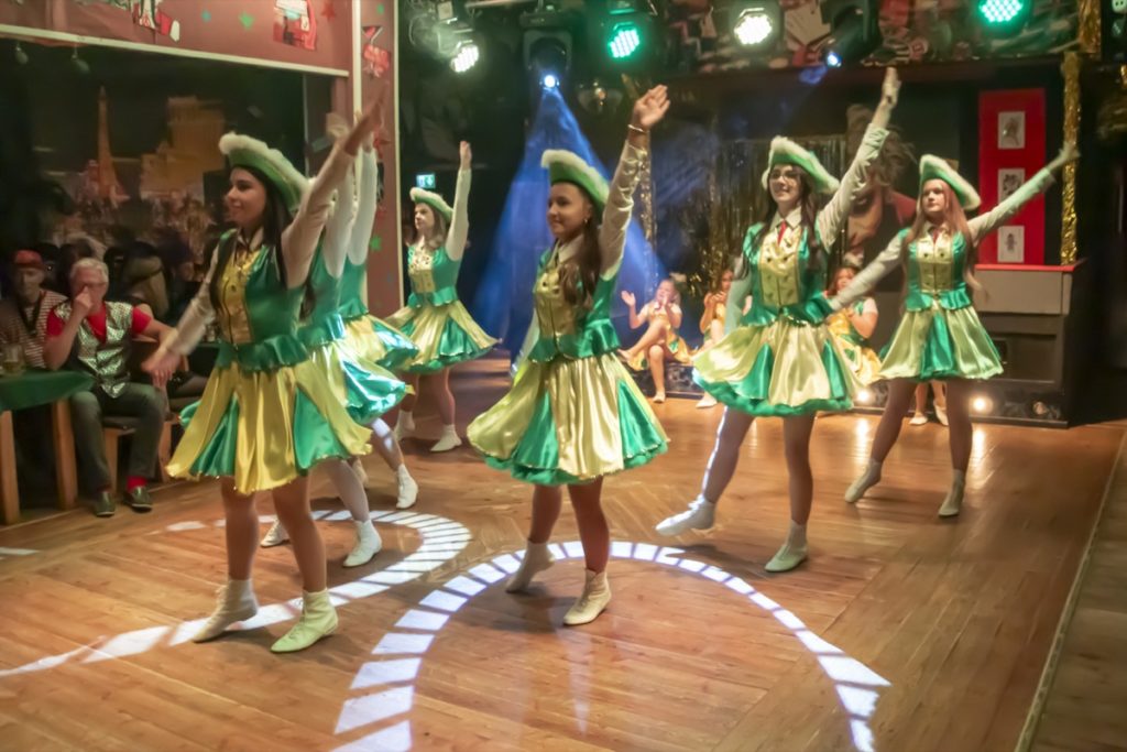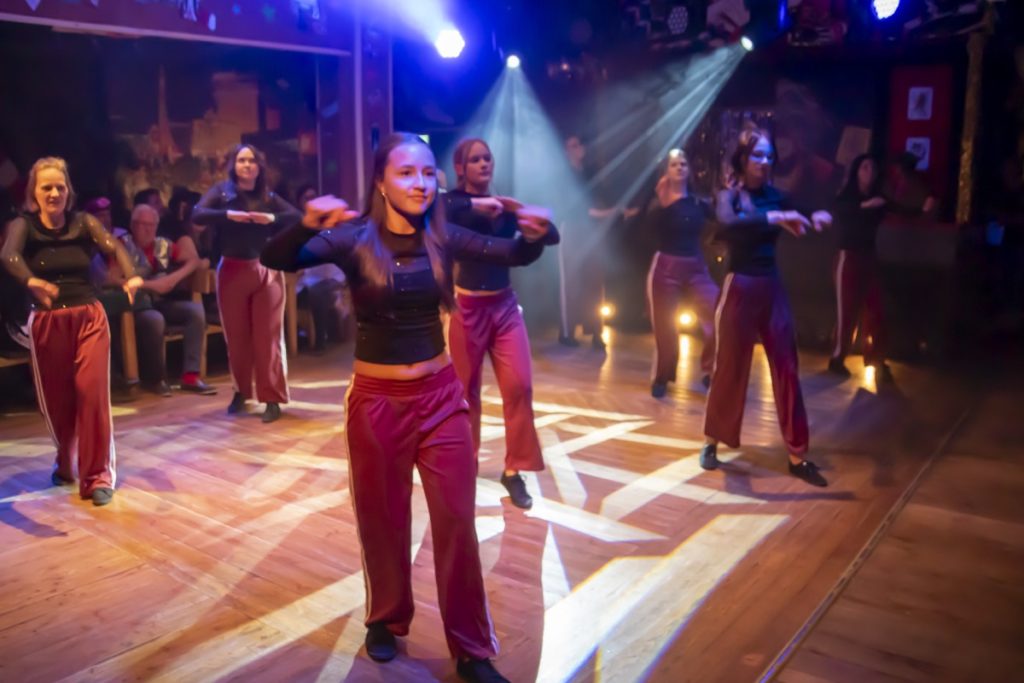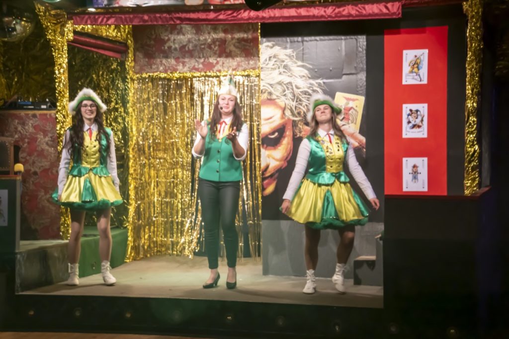 Die Showtanzgruppe des SKV Goppeln mal nicht unter Wasserfontänen, Bananenstauden, Orchideen, Funkenregen, sie zünden ein Bühnenfeuerwerk im Scheinwerferlicht: